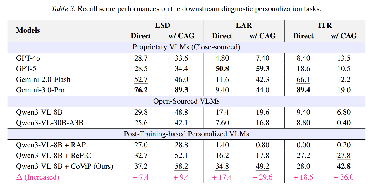 - 分析:ITR任务要求模型捕捉容易被忽略的关键触发词,而个性化的Caption无法带来收益,甚至损害
