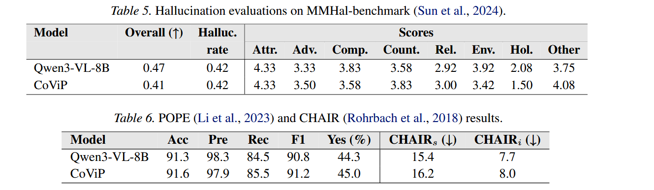 - CoViP 的 caption 因为被训练成“必须覆盖对话里的可验证事实”,更可能把触发关键词也写进去