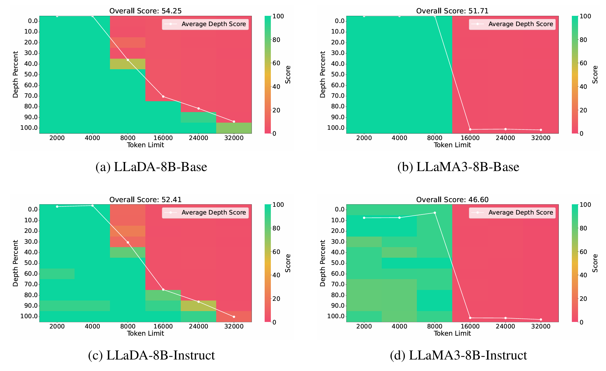 由于模型缺陷,LongLLaDA 无法进行 32K 以上的评估