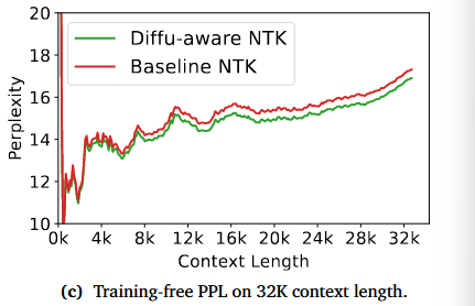 - 目的:在Train-Free的情况下,修正NTK的上下文长度参数输入的作用
