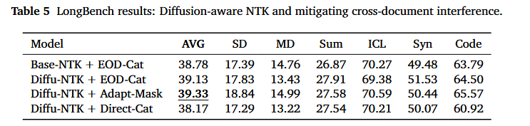 - LongLLaDA观测到这个现象是RoPE+双向上下文带来的