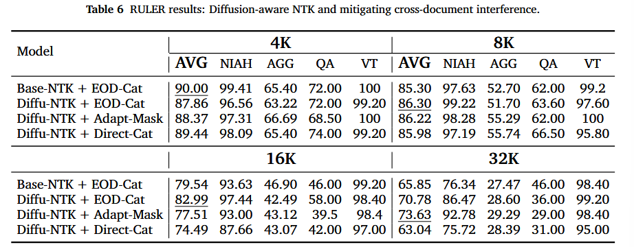 - 能适应扩散模型的迭代去噪特性,使 RoPE 可以稳定外推到 128K tokens